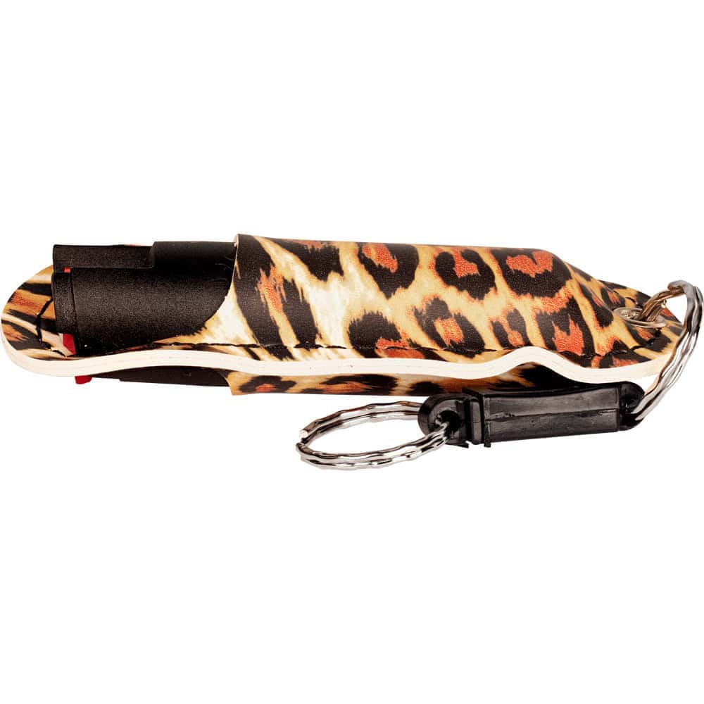 WildFire™ 1.4% MC 1/2 oz Halo Holster and quick release key chain. The Major Capsaicinoids are the true heat measure, WildFire has the hottest on the market at 1.4% Major Capsaicinoids. In addition to causing an attacker pain, The WildFire 10% oleoresin capsicum formula swells the mucous membranes, which makes breathing difficult, and swells the veins in the eyes, causing the eyes to close. It's made from 2,000,000 SHU's of raw pepper and these effects can last up to 45 minutes and cause no permanent damage. Has a UV identifying dye to help aid in the identification of an attacker.